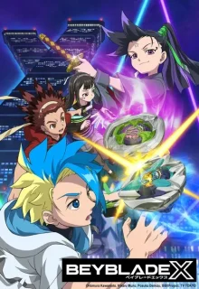 At the heart of X City stands the impressive X Tower, an interconnected twin-skyscraper structure that symbolizes the pinnacle of every Beyblade player’s dream. The building serves as the official headquarters for professional Beybattles, where competitors strive to ascend all one hundred floors; at its summit, the reigning champions, Team Pendragon, await contenders worthy of challenging their title. Bird Kazami, an amateur Blader, arrives in the city eager to turn professional. However, he and his teammates are crushed in their first qualifying match, prompting his companions to give up and disband their team. Fortunately, Bird is soon approached by the easygoing Ekusu Kurosu. In disguise as “Kamen X” to hide his identity as a former member of the undefeated Team Pendragon, Ekusu wants to climb the tower all over again. To complete their new group, they recruit skilled Beyblade expert and savvy social media influencer Multi Nanairo. Driven by their individual goals, the trio wins their preliminary rounds, launching their careers as Team Persona. Bird and his new friends must navigate the world of corporate sponsorships, earn the fickle public’s support, and defeat many formidable opponents—all in their quest to reach X Tower’s peak. [Written by MAL Rewrite]